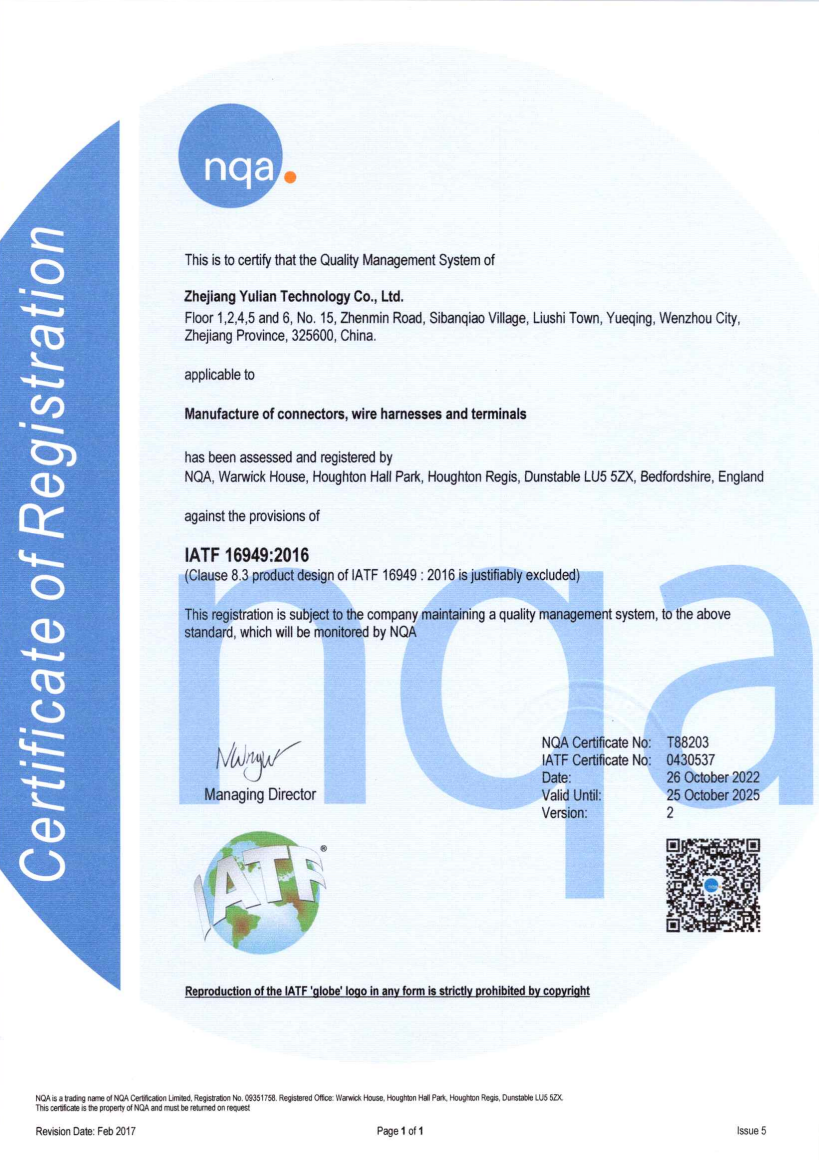 Zhejiang Yulian Technology Co., Ltd. Is a full service manufacturing company dedicated to offering auto connectors, wiring harness, terminals blocks and other accessories in aftermarket automotive industry.
